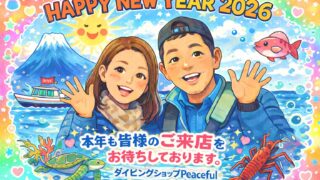 新年のご挨拶 2026 〜Peaceful Diving Shop 伊豆〜 あけましておめでとうございます。昨年もダイビングショップPeacefulをご利用いただき、誠にありがとうございました。 皆さまと一緒に...