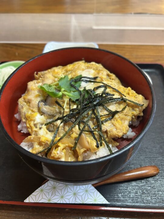 なので蓋・親子丼・温かい蕎麦と言う順番で重なっています。