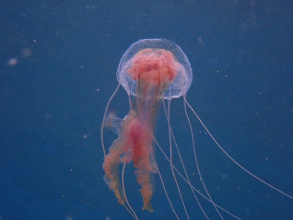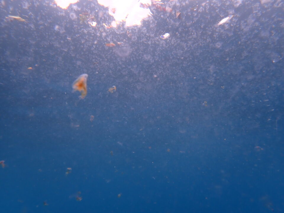 見えますか?ぱっと見ですが3~4種類のクラゲが漂っていました♬